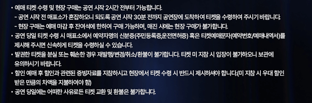티켓예매 시 유의사항