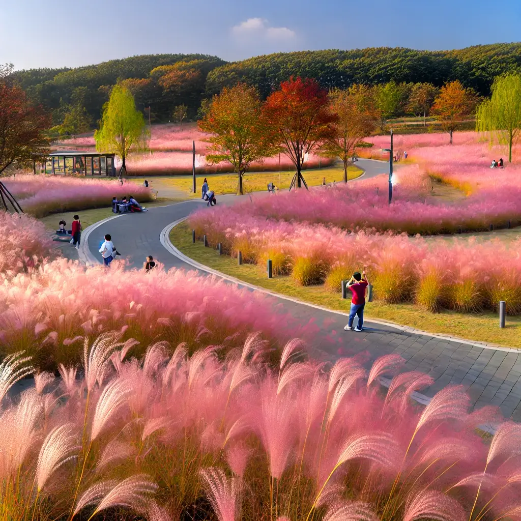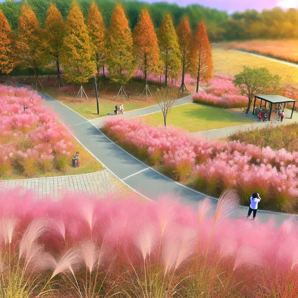 대구 근처에 위치한 칠곡의 가산수피아는 핑크뮬리 명소로 빠르게 인기를 얻고 있는 숨겨진 보석입니다. 잘 알려진 명소와 달리 가산수피아는 잘 관리된 산책로가 있어 가을 햇살 속에서 여유롭게 산책할 수 있는 더 고요한 경험을 제공합니다. 입장료는 다른 곳보다 약간 비쌀 수 있지만, 장점은 사람이 덜 붐비기 때문에 큰 관광 명소의 번잡함 없이 핑크뮬리의 평화로운 아름다움을 즐길 수 있다는 것입니다. 도시를 벗어나 조용하고 자연이 가득한 하루를 즐기고자 하는 사람들에게 완벽한 장소입니다.