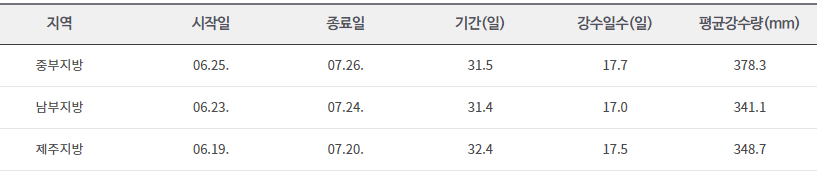 <중부지방> 6월 25일 ~ 7월 26일